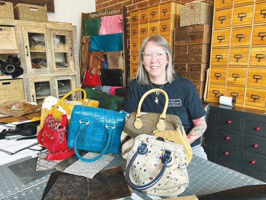 Located in the heart of downtown Littleton, NC, Gypsy Wood Leathers offers unique handcrafted bags designed by Cathy Wiggins.